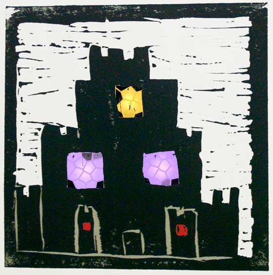 Linocut print of a castle by one of the project students. Something is happening behind those doors and windows? I wonder what?